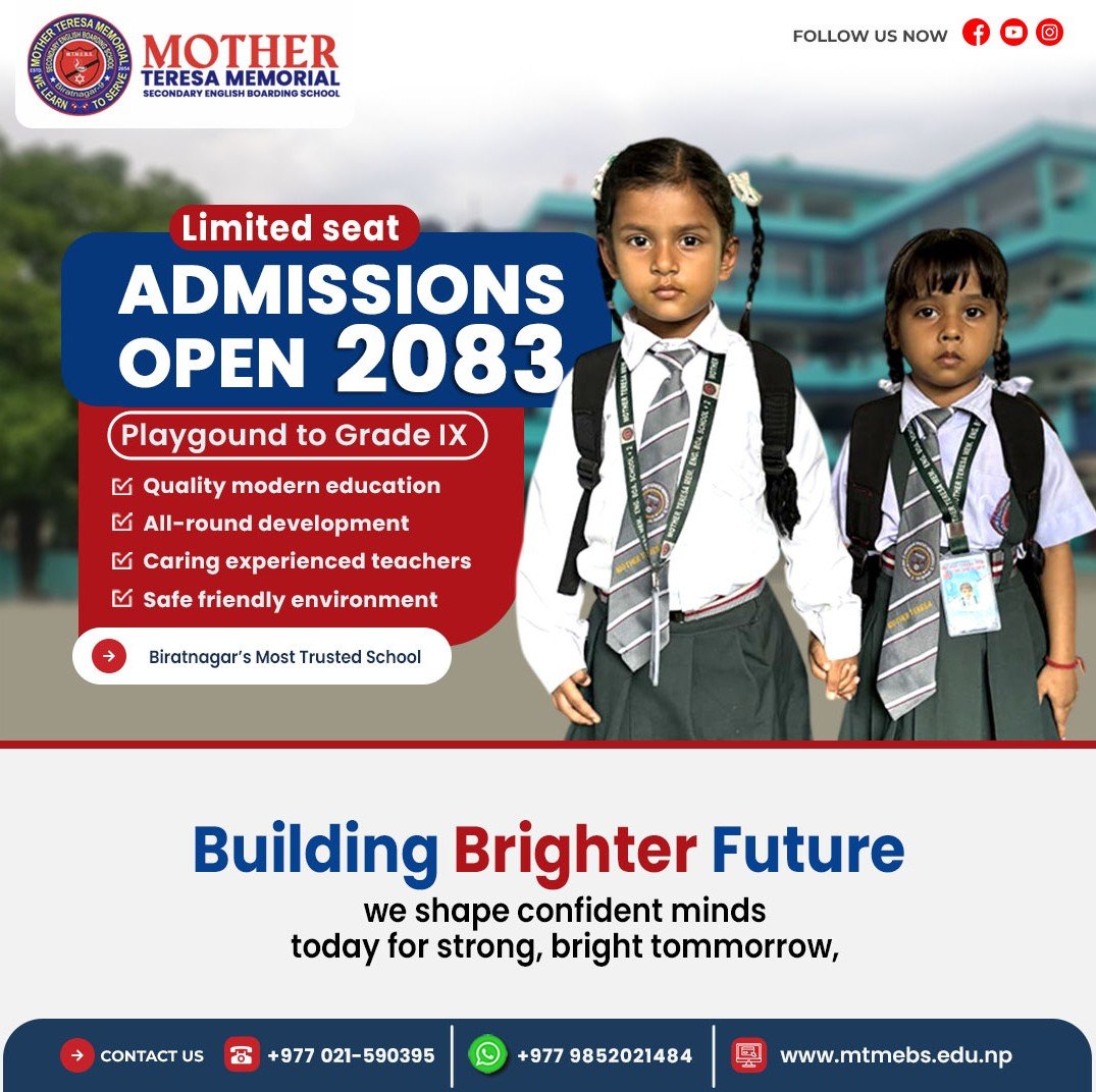 Mother Teresa Memorial Secondary English Boarding School (MTMEBS) is established with the support of renowned and experienced promoters with the sole aim to provide best Educations.